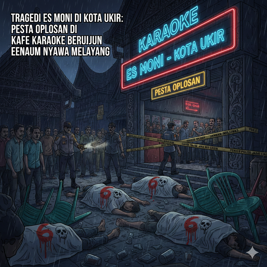 JEPARA, LCKINEWS.com—Suasana tenang di Desa Suwawal Timur, Kecamatan Pakis Aji, Jepara, berubah menjadi duka mendalam setelah sebuah pesta minuman keras oplosan yang melibatkan menu “Es Moni” berakhir tragis. Hingga hari ini, dilaporkan enam orang meninggal dunia secara beruntun setelah menenggak minuman mematikan tersebut di sebuah kafe semi karaoke.